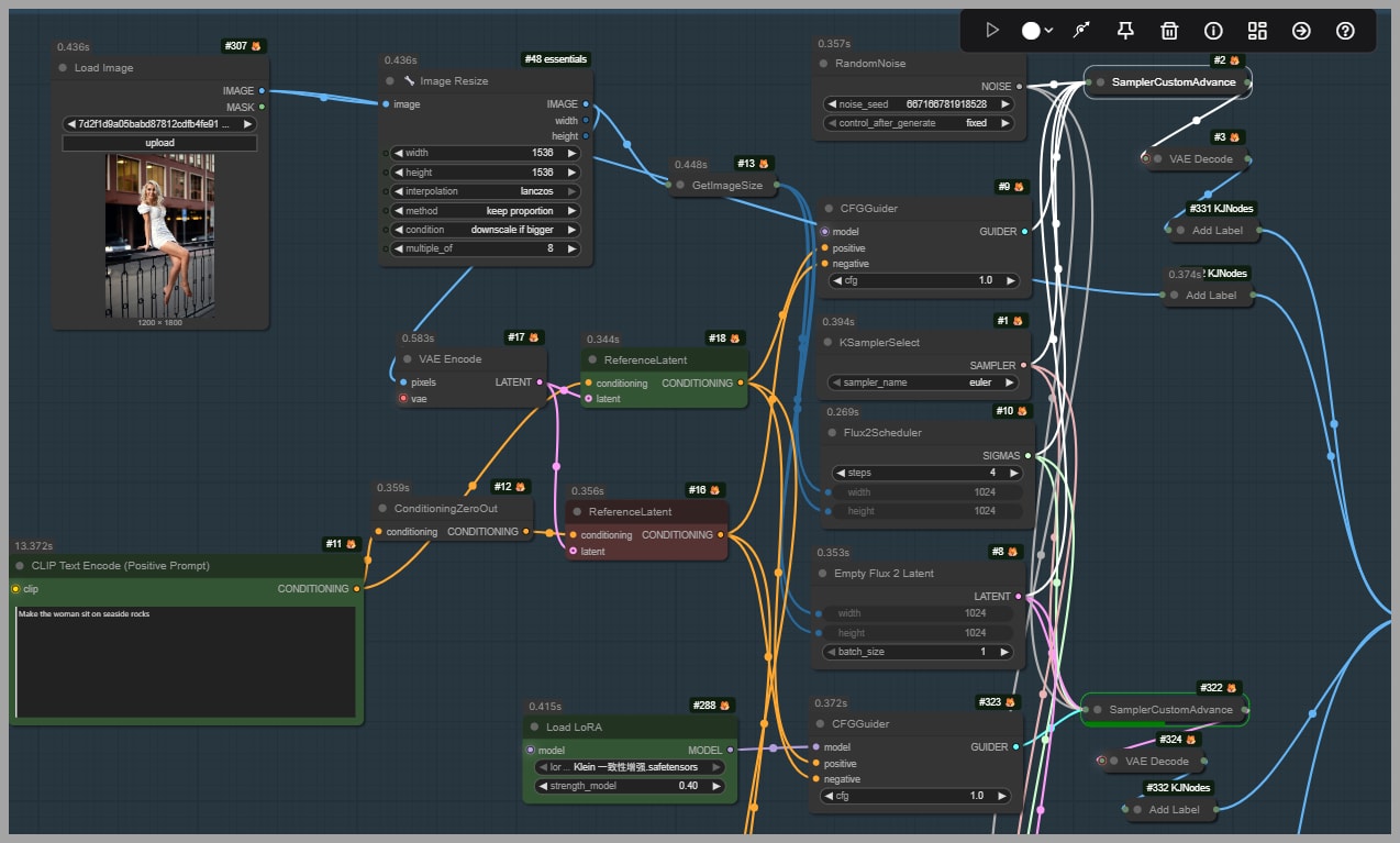 Without additional guidance, Flux.2 Klein can drift away from the source image too easily. A simple scene change may also alter the face. A hand edit may distort the body. A background replacement may introduce anatomy problems or lighting that no longer matches the original portrait.