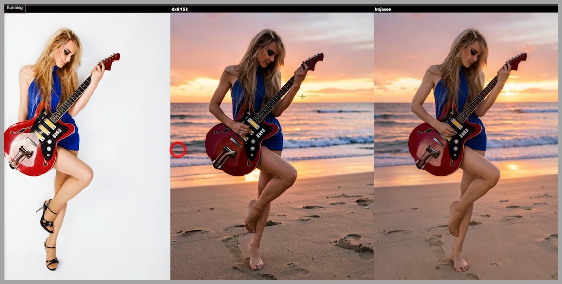 Editing the Guitar Portrait at a Sunset Beach