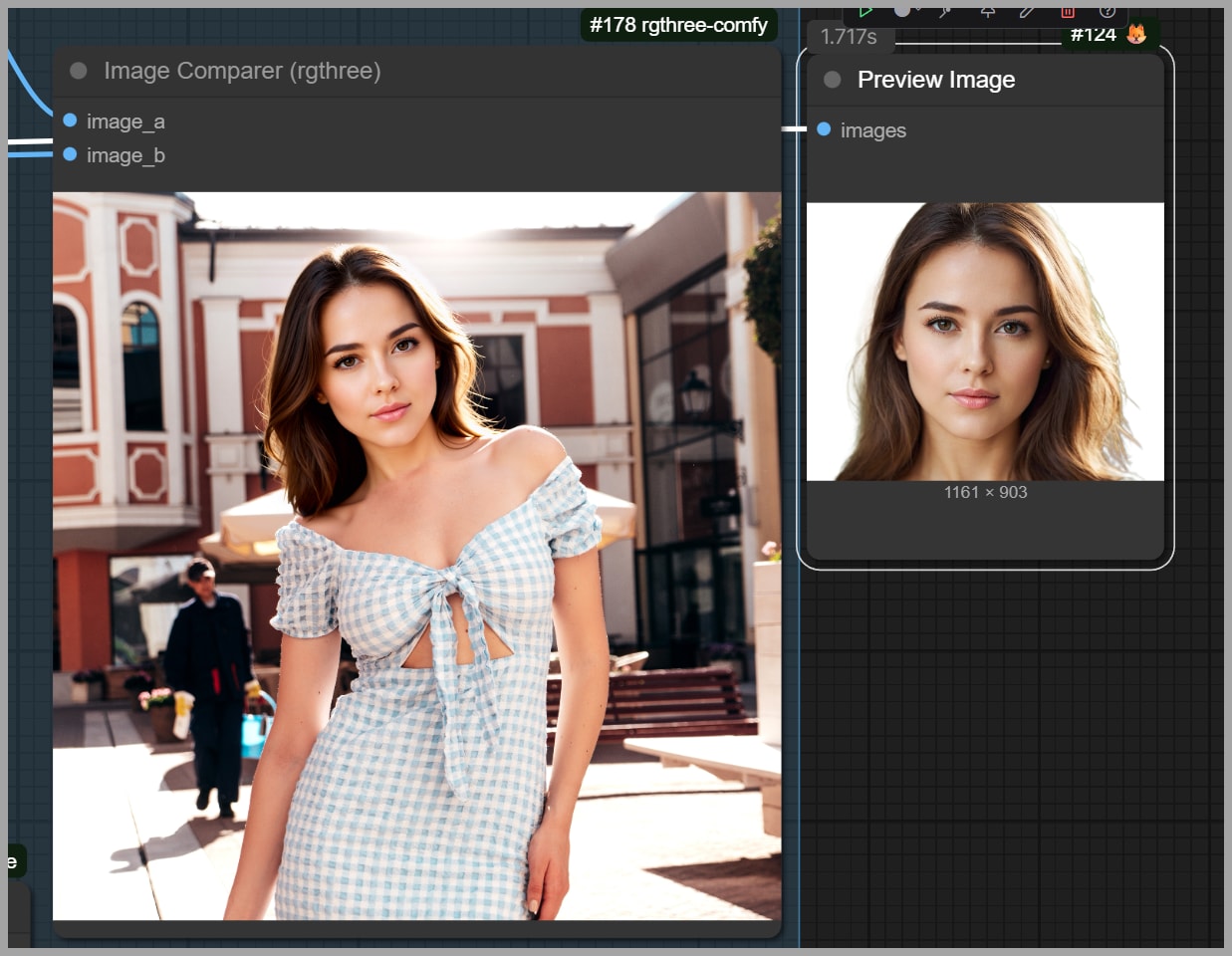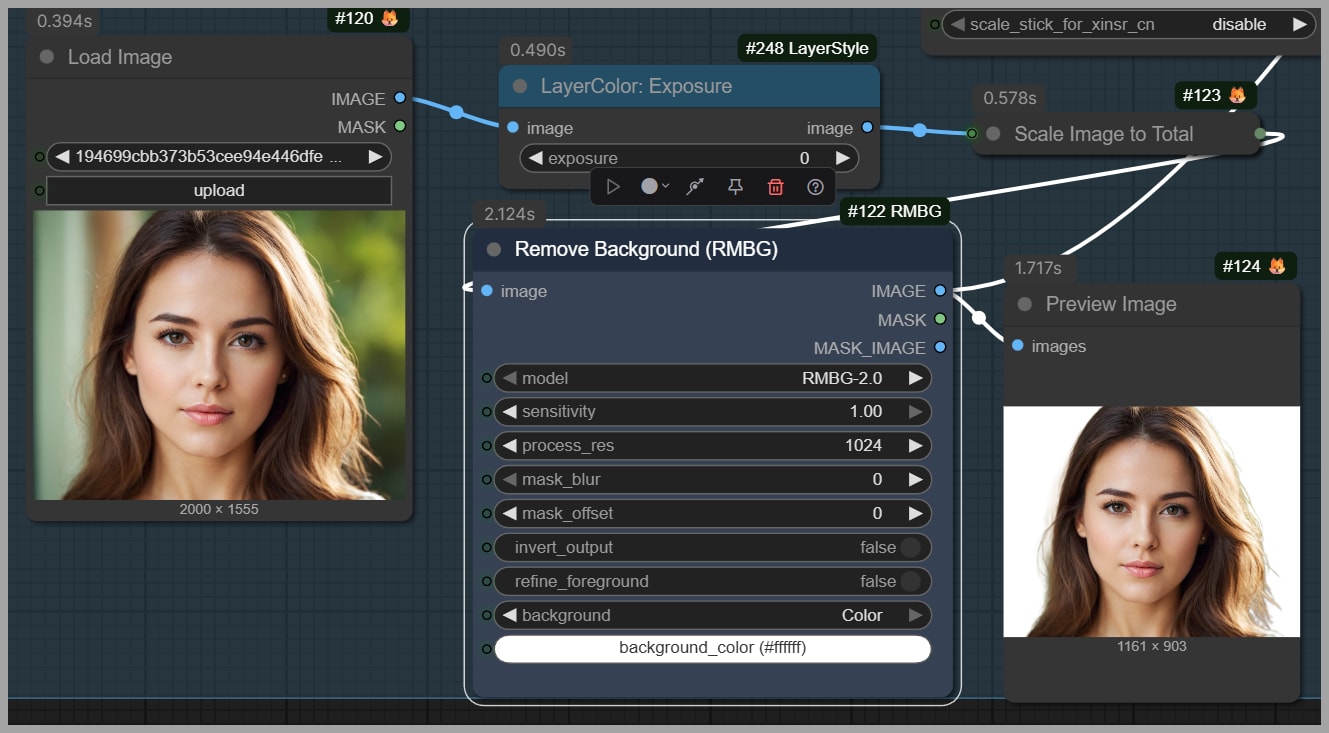 I also use “Remove Background (RMBG)” node to remove the background from the headshot. This keeps the model’s attention focused entirely on the head, which helps in creating a more consistent and realistic result.
