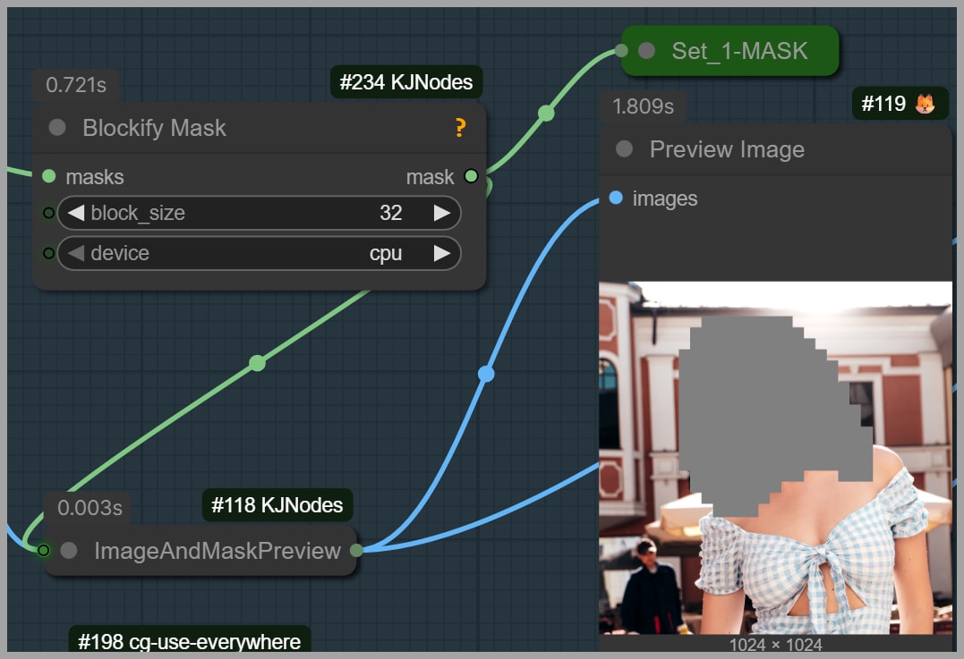 Masking is a vital part of this workflow because it tells ComfyUI exactly where the model needs to focus its edits. We mask the head area so that the software knows to only work within this region.