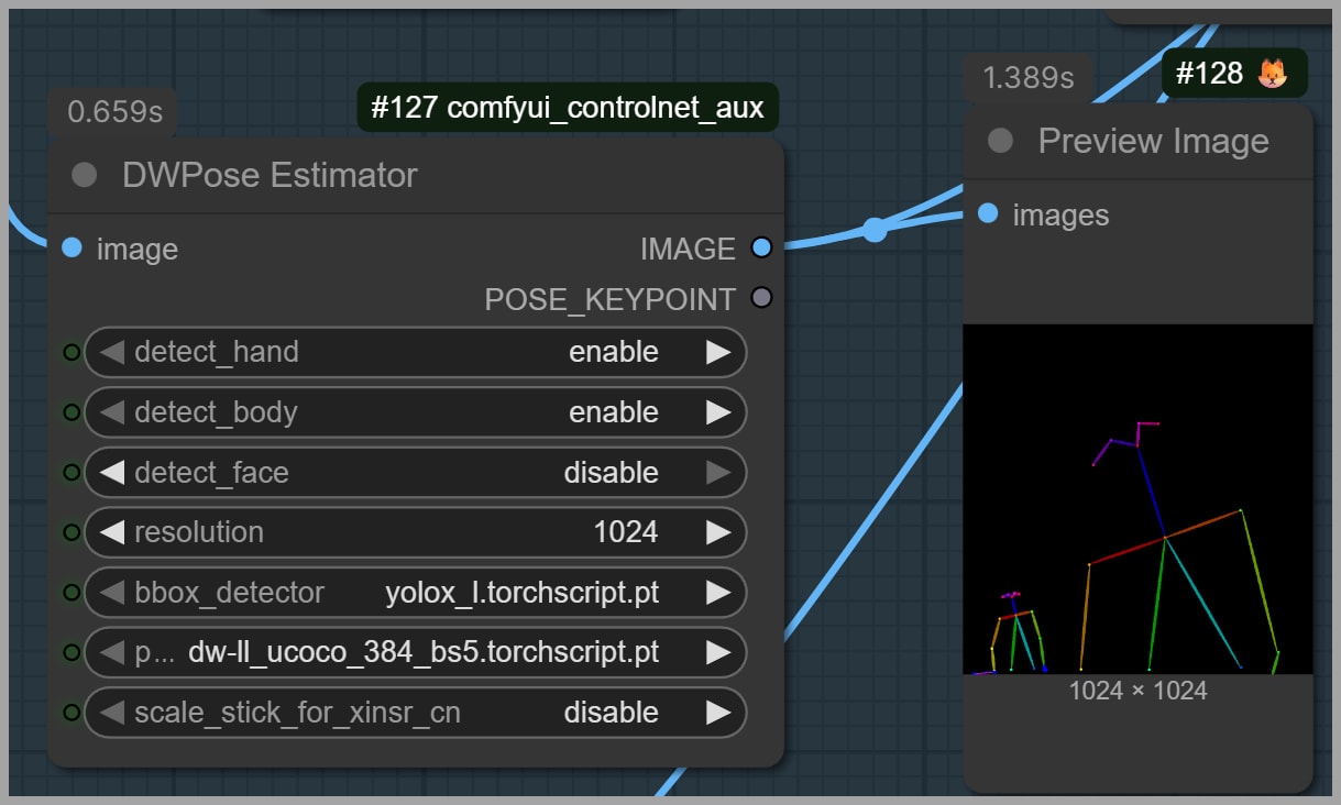 At this point, we need to ensure that the face we are inpainting is positioned correctly on the body in the portrait. This is where the DWPose Estimator node comes into play.