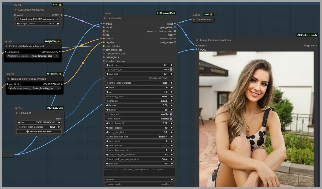 Then we polish the final result using Face Detailer so the gaze and facial consistency match what we want.