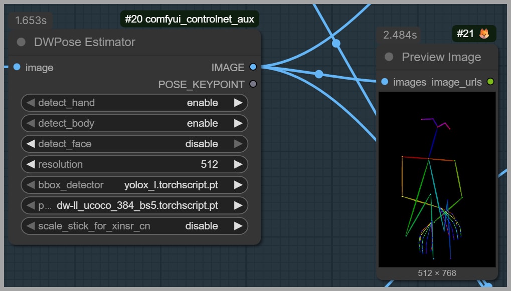 - Image 3: a pose skeleton generated from the pose reference using DWPose Estimator