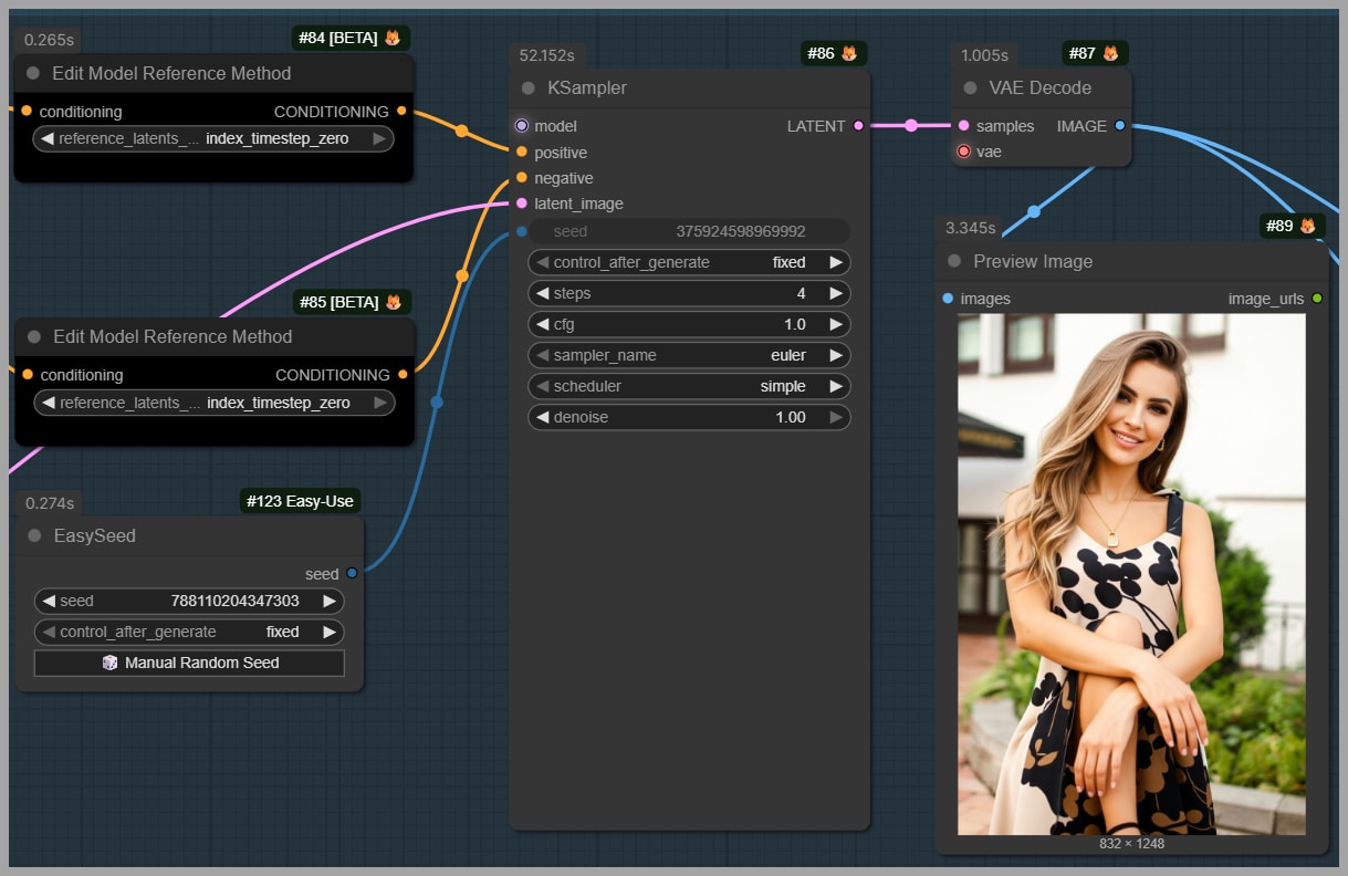Let’s start with the baseline approach: the workflow is basically the default Qwen Image Edit configuration.