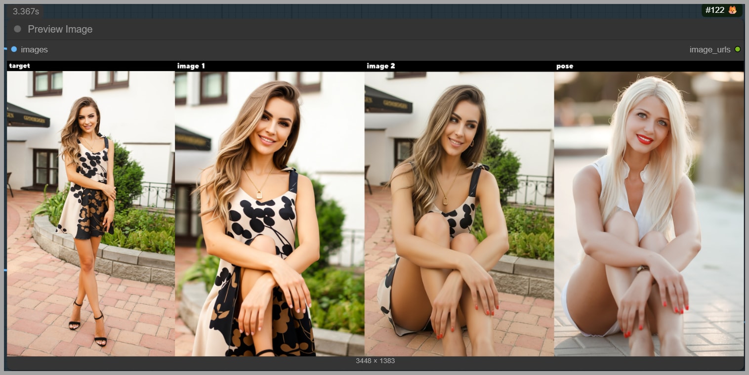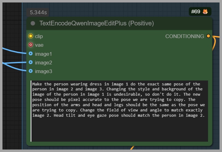 Since the author’s original prompt assumes the pose is in Image 2, I tweak it slightly so the model also uses Image 3.