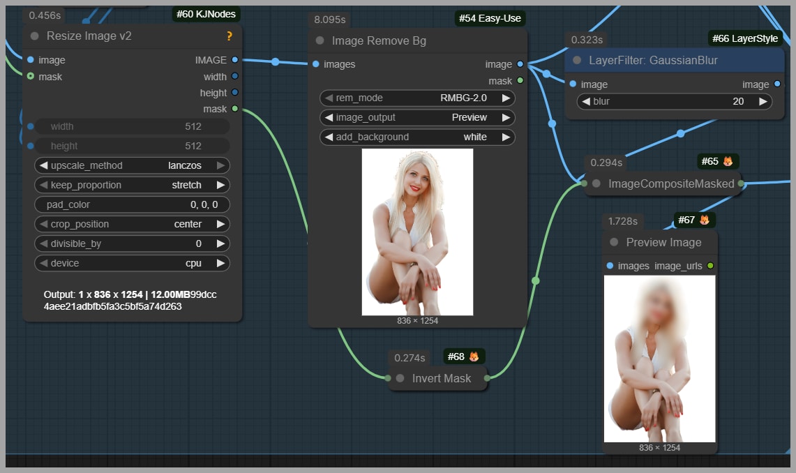 - The workflow generates a new image where the portrait subject adopts the reference pose.